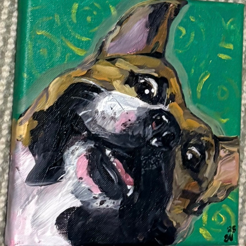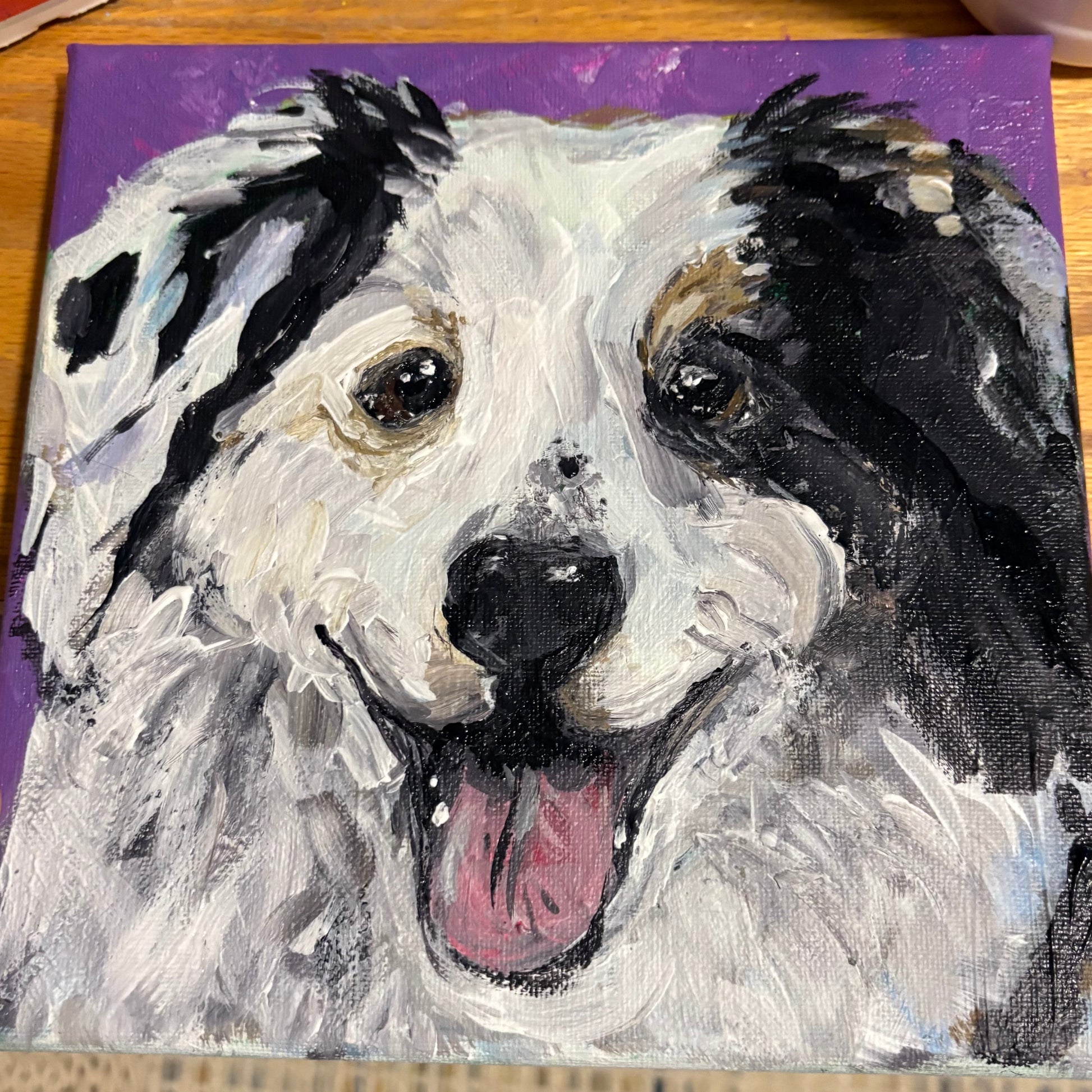Acrylic on 8X8in Canvas. After purchase please email multiple reference photos, along with any specific requests for your portrait to nickrentelizabeth@gmail.com